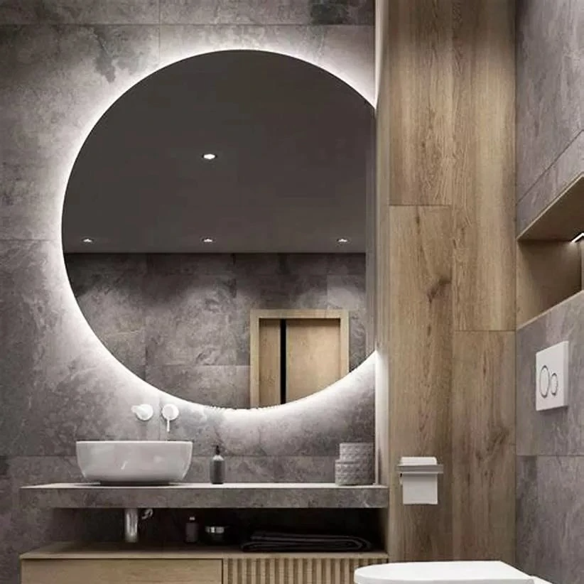 Hogar / Producto / espejo de baño / Espejo redondo LED para baño, espejo decorativo para lavabo de pared, espejo de tocador con luces LED